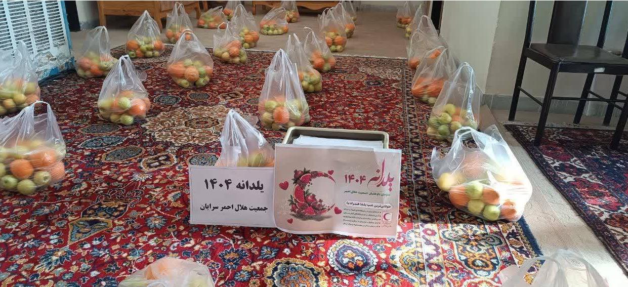 توزیع ۶۰ سبد میوه بین خانوادههای نیازمند توسط جمعیت هلالاحمر سرایان